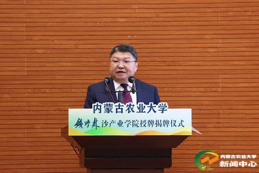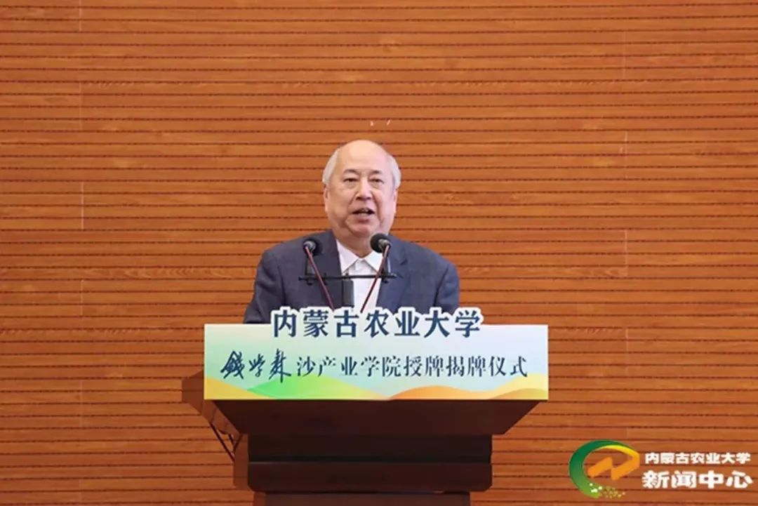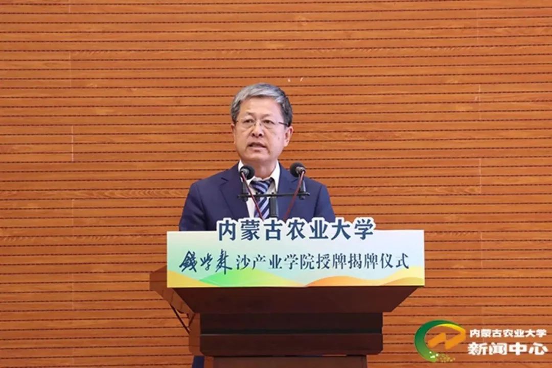 钱永刚宣读了钱学森冠名管理委员会关于沙产业学院冠名申请的批复,为钱学森沙产业学院授牌并讲话。他期待钱学森沙产业学院能够取得更出色的成绩、更丰富的成果,践行钱学森知识密集型大农业理论,培养出内蒙古地区以及全国治沙防沙所需要的杰出人才。