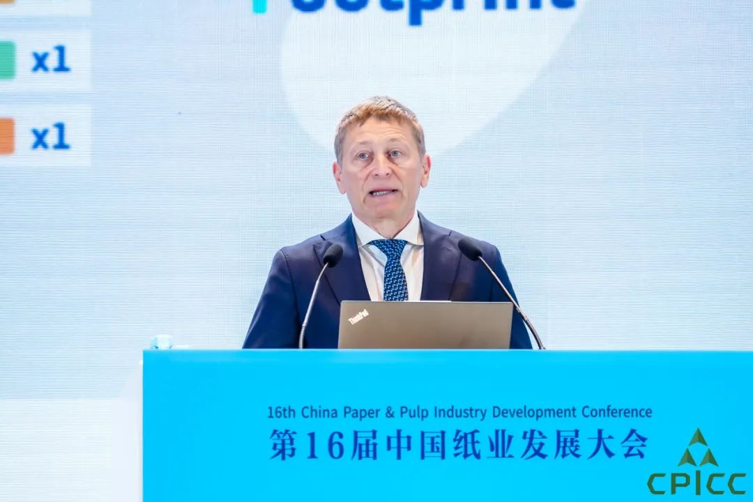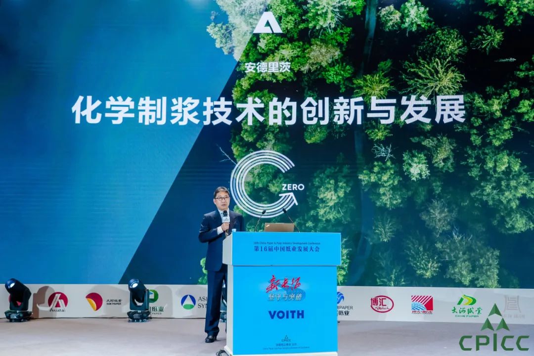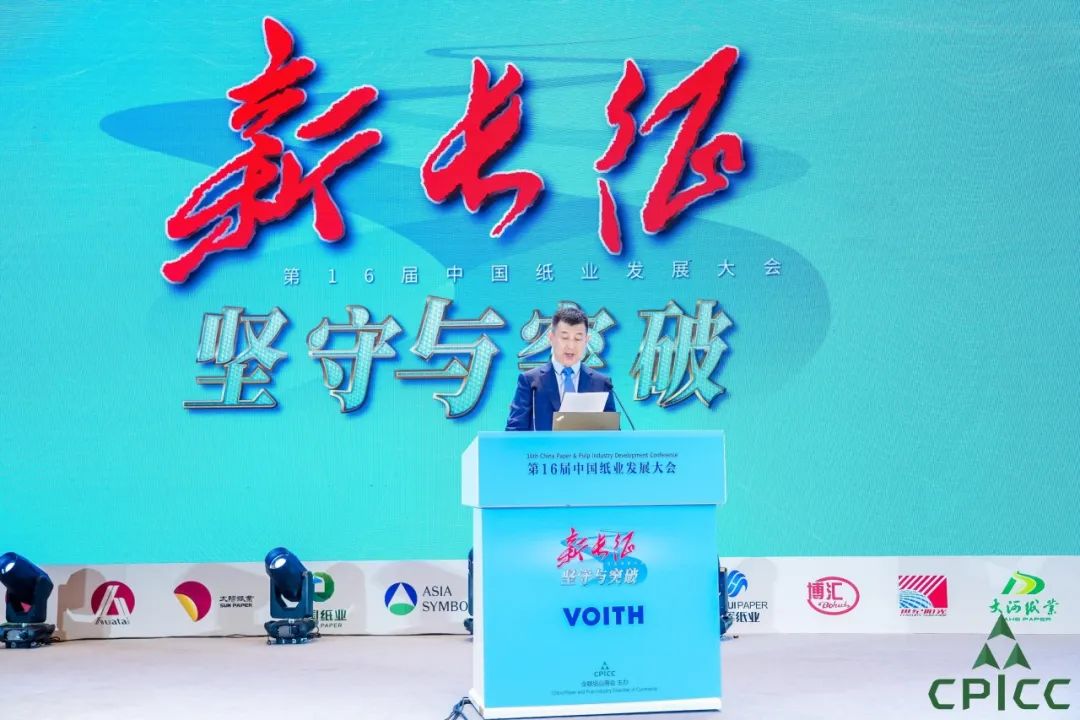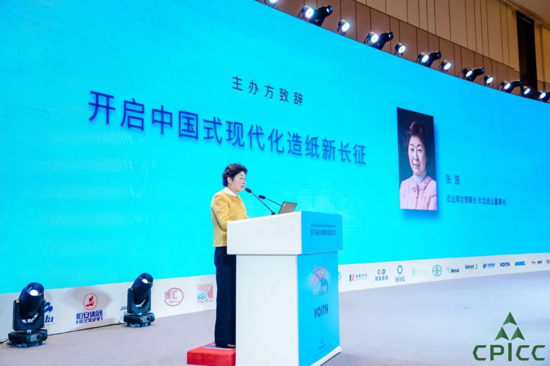 发展论坛以“坚守与突破——开启中国式造纸现代化新长征”为主题,纸业商会理事长、玖龙纸业董事长张茵代表主办方致辞,论坛独家赞助单位福伊特造纸总裁兼CEO Andreas Endters作开幕演讲。