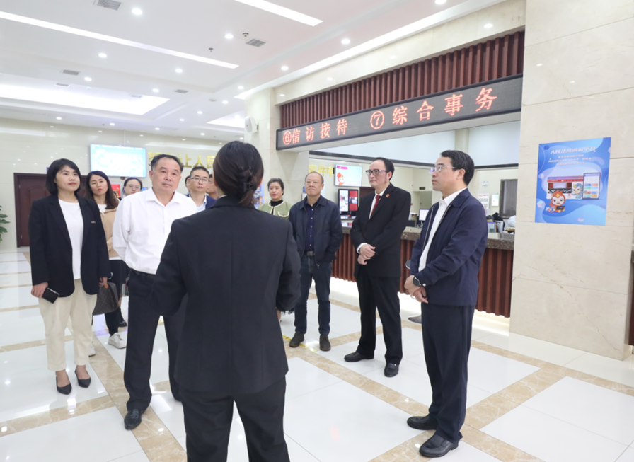 10月27日,也是市法院企业家开放日,周有智院长、张松涛副院长等领导陪同与会企业家代表、商会代表参观诉讼服务中心,并就“法惠千企 非公维权”服务企业平台作一一介绍和展示。