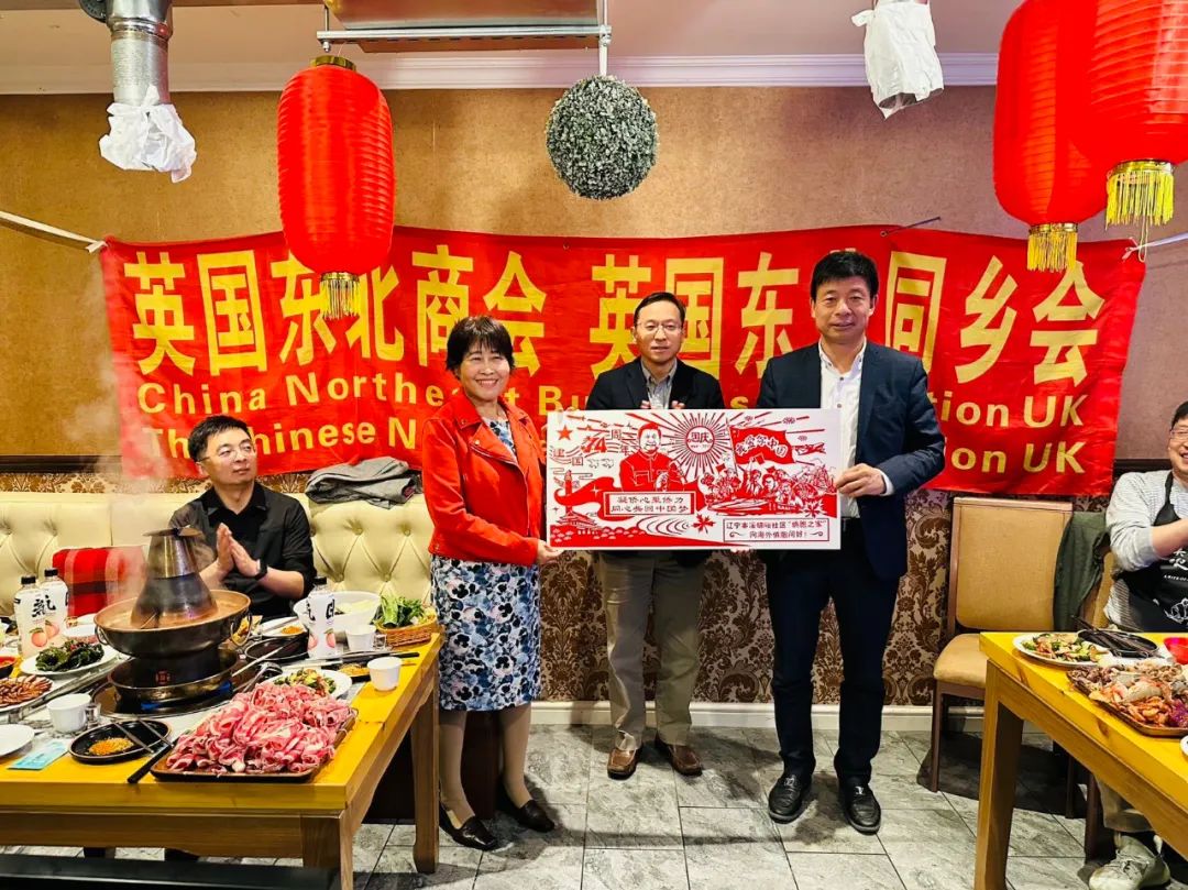 10月6号,英国东北商会、英国东北同乡会将《五湖四海庆华诞·同心共圆中国梦》剪纸作品赠送给了英国马克思恩格斯国际人文交流学会。中华人民共和国驻英国曼切斯特总领事唐锐先生代表曼城总领事馆出席赠送仪式。