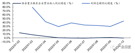 2022年协会重点联系企业营收同比-0.3%,利润同比+43.7%