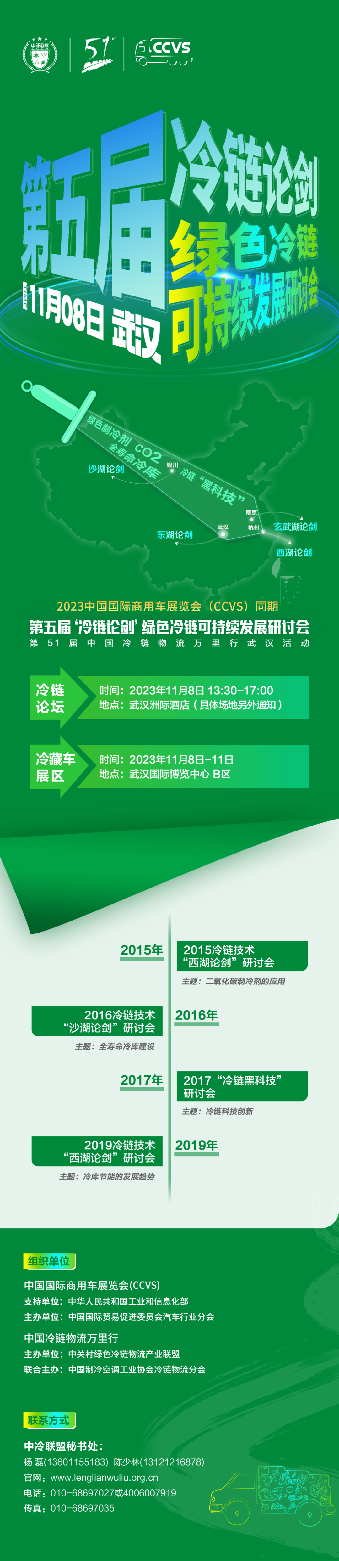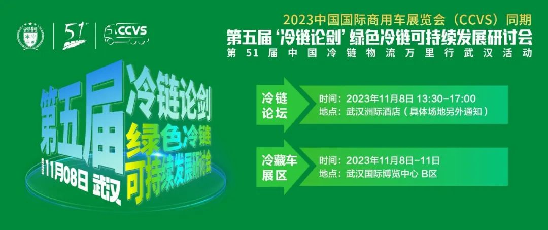 中冷联盟、中冷协冷链物流分会拟定于2023年11月8日在武汉举办2023中国国际商用车展览会(CCVS)同期第五届‘冷链论剑’绿色冷链可持续发展研讨会,主要讨论农产品流通服务、冷链助力乡村振兴、预制菜加工产业发展等话题,届时邀请政府机构、专家学者、企业领导等嘉宾,分析行业现状与趋势、分享创新案例。诚邀广大会员单位、全国冷链物流企业共话冷链物流绿色发展。