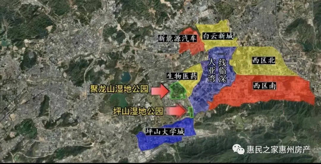 产业:紧邻坪山新能源汽车产业元、国家生物医药产业园;教育:南面靠近坪山大学城,目前已引进了深圳技术大学、北京中医药大学深圳校区、深圳大学希伯来学院等8所院校;公园:临近深圳聚龙山湿地公园、坪山湿地公园,一定程度上弥补了片区内休闲公园的短板。