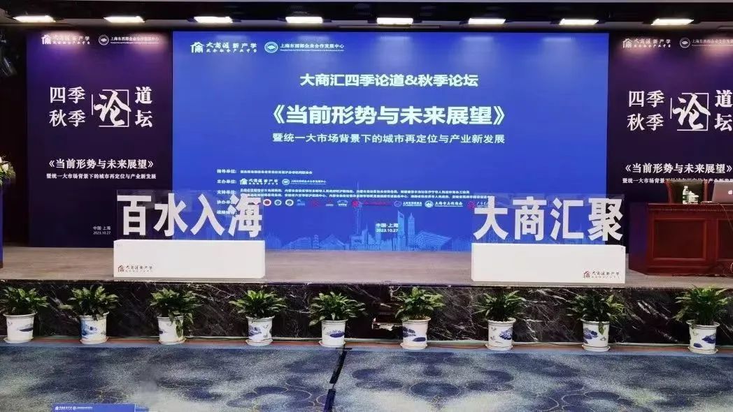10月27日下午,“大商汇四季论道·秋季论坛”在国务院各部委各省市自治区驻沪办事机构联合会指导下,由大商汇·新产学携手上海东西部企业合作发展中心联合主办的宏观经济论坛。商会副会长黄翠娥,理事彭均林、彭平根,会员陈艺等受邀出席此次活动。本次论坛特邀上海市宏观经济学会会长、上海市政府重大行政决策咨询专家、上海市发展与改革委员会原副主任王思政会长为大家带来《当前形势与未来展望暨统一大市场背景下的城市再定位与产业新发展》主题演讲,并邀请四百余位企业精英和全国各省市驻沪办共同聚焦本次盛会,共谈新经济,新未来。