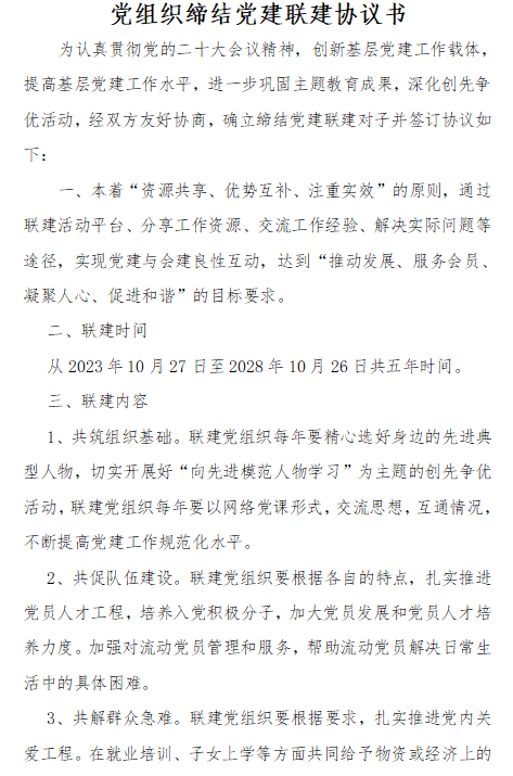 两会党支部签约缔结党建联