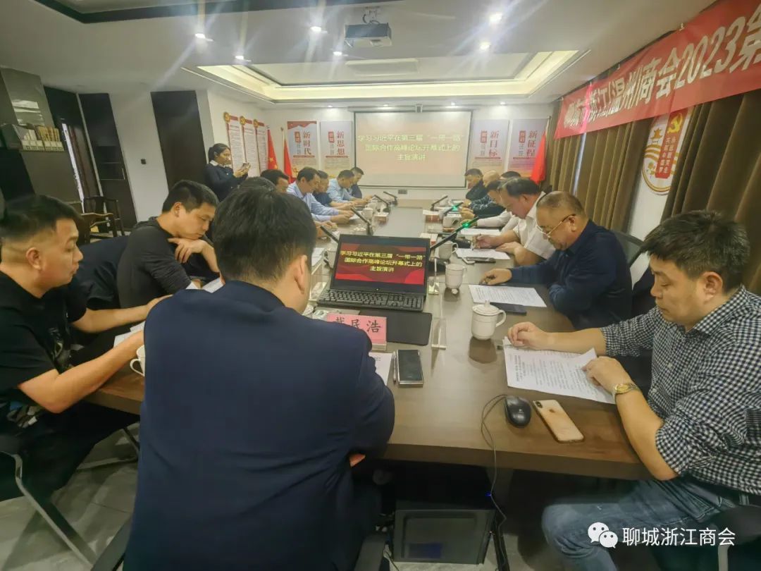 为学习贯彻习近平新时代中国特色社会主义思想,深化文明单位创建,与会人员,与会人员一起学习了习近平在第三届“一带一路”国际合作高峰论坛开幕式上的主旨演讲。10月18日上午,国家主席习近平在人民大会堂出席第三届“一带一路”国际合作高峰论坛开幕式并发表题为《建设开放包容、互联互通、共同发展的世界》的主旨演讲。会长们一起精研细读了演讲内容,大家纷纷表示,当前为经济复苏阶段,需要大家把握机遇,团结携手,以合作促进发展。并表示接下来将继续积极探索,努力实践,参与一带一路建设,积极弘扬企业家精神,积极走出去,坚持开放合作、深化互联互通、坚持绿色发展、推进数字经济合作、坚持合规经营,履行社会责任,为推动高质量共建“一带一路”走深走实做出贡献。