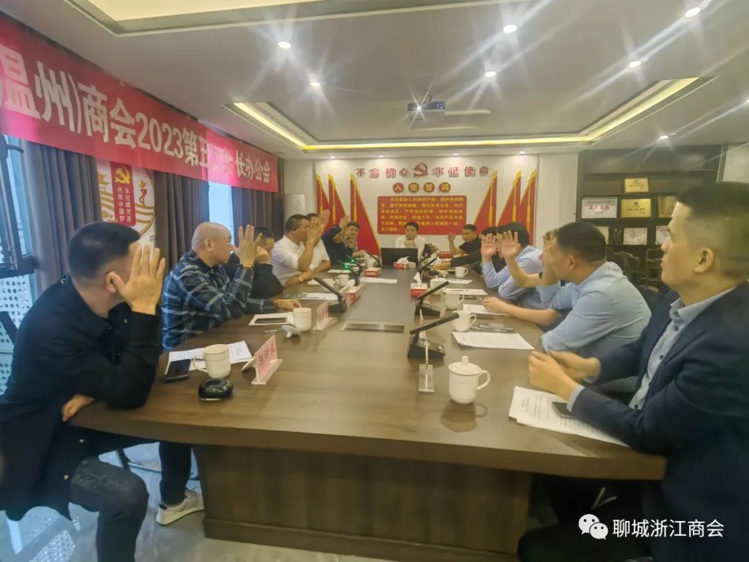 2023年10月28日下午,聊城市浙江(温州)商会2023年第五次会长办公会在商会会议室成功召开,会长林乃相,党支部书记陈光南,常务副会长胡德亮、王寿华、黄孝象、王清、胡丰平、吕瑞良、姜刚海、朱晓云、陈金斌、梅山镜,副会长彭三朝、林济道、陈时益,新生代联合会会长戴民浩等二十余人参加会议。