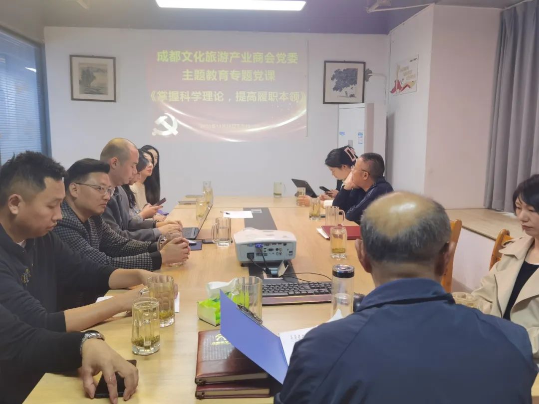 10月26日下午,成都文化旅游产业商会党委在商会会议室开展主题教育活动。商会党委委员,儒商支部党员,星娱支部党员,力久支部党员约18人参加会议。会议由党委书记肖满生主持。