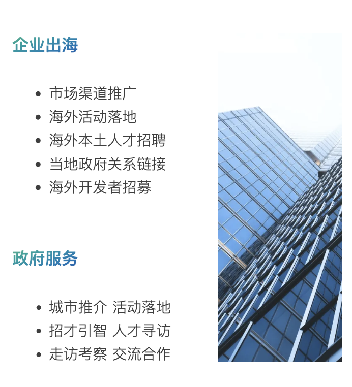 与出海企业对接,打造面向于中国企业的“全球本地化创新服务体系”。
