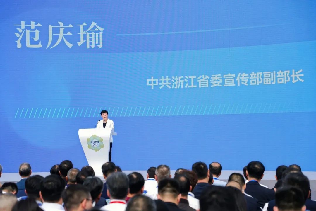 浙江省委宣传部副部长范庆瑜说,横店影视文化产业从零起步,闯出了一条极具浙江特色和时代特征的文化改革创新之路。横店从原本籍籍无名的小镇到首个国家级影视产业实验区,再到全国影视风向标和影视业市场化改革的先锋模范,充分体现了走在前列、勇立潮头的浙江精神,也体现了横店人敢想敢干的创业精神。