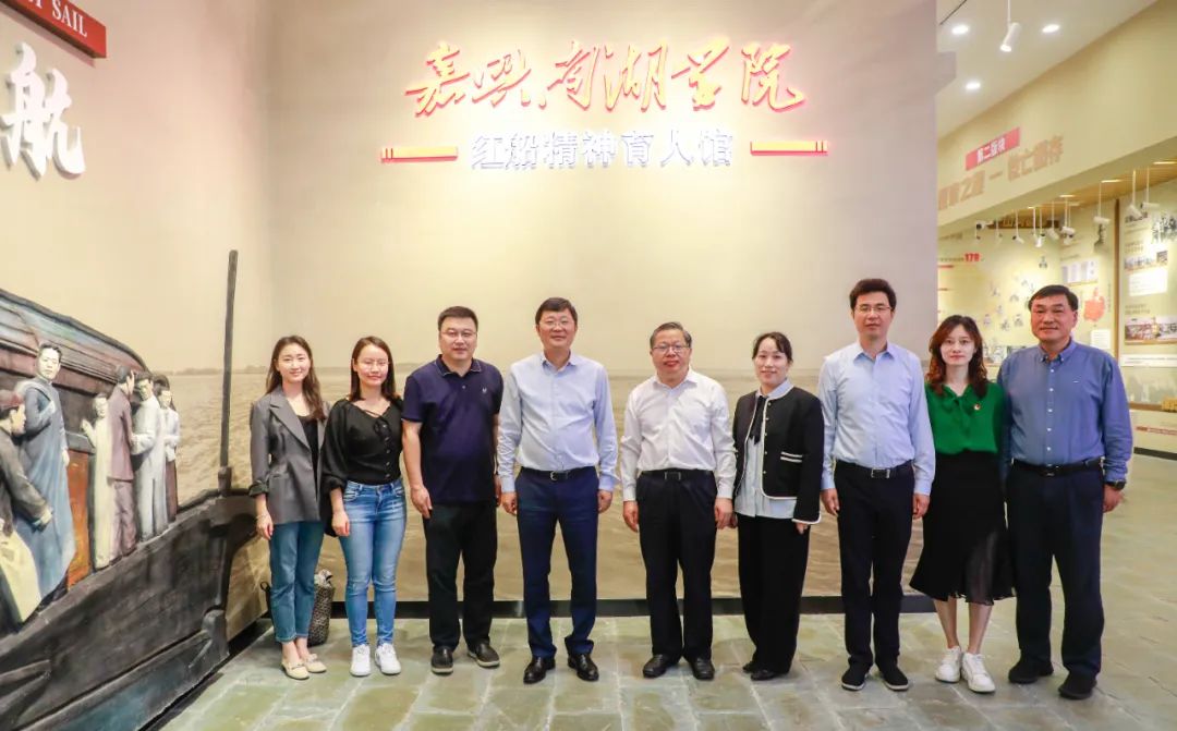 10月26日上午,商会秘书处首站抵达南湖革命纪念馆。在宣誓墙前,商会秘书处党支部进行集体宣誓,在“红船精神”的发源地重温入党宣言,牢记初心使命。随后,商会秘书处成员参观了南湖革命纪念馆,感受一代中国共产党人救亡图存的艰辛历程。10月26日上午,商会党委副书记、执行副会长、秘书长吴仲春一行走进嘉兴南湖学院,参观红船精神育人馆并进行交流。学院党委副书记郭坚刚、副校长袁志明陪同出席,商会常务副秘书长顾国强,党委书记助理、副秘书长俞秋勤等陪同参加。学院党委书记盛付祥介绍了红船精神的内涵,生动介绍从上海石库门到嘉兴南湖的建党历史。在谈到教学理念时,他指出学院打造红色大学、城市大学、产业伙伴型大学,并计划在未来将联合上海应用技术大学、北方工业大学、南方科技大学启动“校企博士共享工程”,用“七共七双”的理念打造一流应用型大学。吴仲春介绍了商会在人才和科创上的做法,并表示未来在校会合作、校企合作上大有可为。