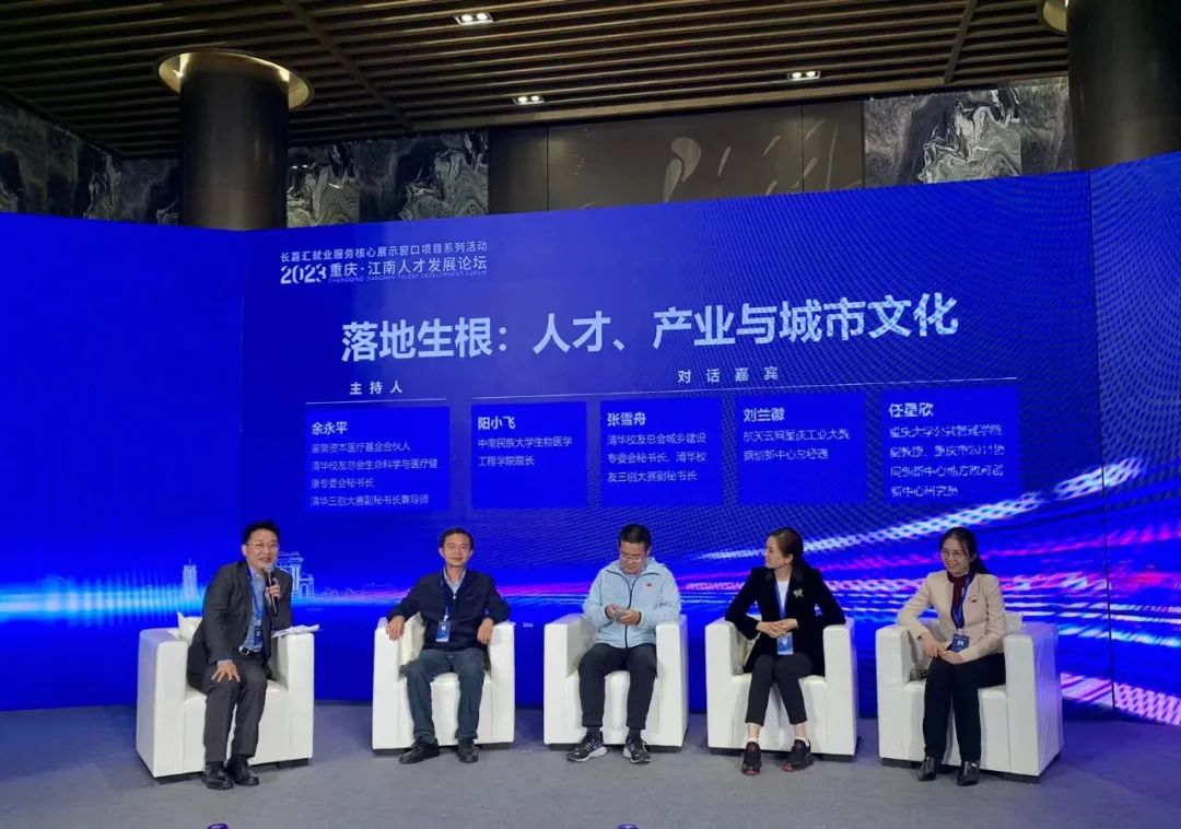 活动现场,中南民族大学生物医学工程学院院长阳小飞,清华校友总会城乡建设专委会秘书长、清华校友三创大赛副秘书长张雪舟,航天云网重庆工业大数据创新中心总经理刘兰徽,重庆大学公共管理学院副教授、重庆市2011协同创新中心地方政府创新中心研究员任星欣围绕人才、产业与城市文化等内容作分享交流。活动最后进行了签约仪式,各方将在学科建设、学术交流、实践创新、人才培养等方面深化合作。