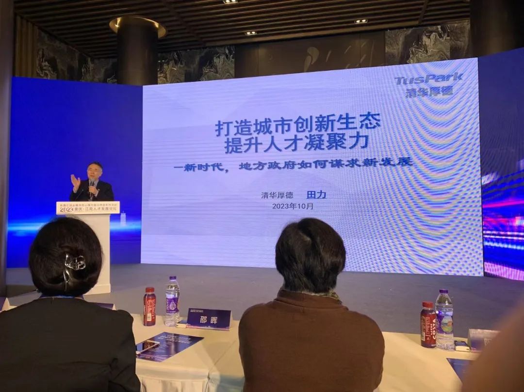 本次活动邀请到国内外院士和知名专家,旨在探讨如何深化和优化政府、企业、科教部门与高层次人才之间的互动与合作,共同推动以高质量人才服务驱动教育、科技、产业融合发展的基层探索。清华科技园教育培训中心执行主任、教授,北京厚德人力资源开发有限公司董事长田力,法国科学院院士、法国斯特拉斯堡大学教授Eric westhof,武汉大学生命科学学院教授、博士生导师姚镜,清华四川能源互联网研究院副院长、研究员刘婉华,清华大学国家卓越工程师学院招生与学位质量办公室主任任娜出席会议并作主旨演讲。