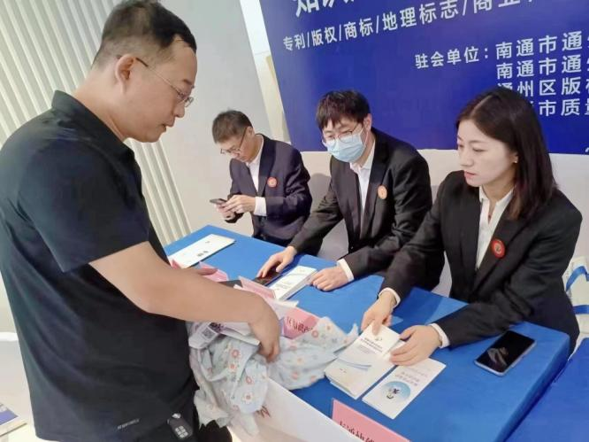 中心在现场设立了知识产权保护“一站式”服务工作站,联合区市场监管局(知识产权局)、区版权局、通州湾江海联动开发区人民检察院、市质量技术和标准化中心等单位工作人员,为参展商和消费者提供包含专利、版权、商标、地理标志等在内的咨询、投诉、维权援助等服务。
