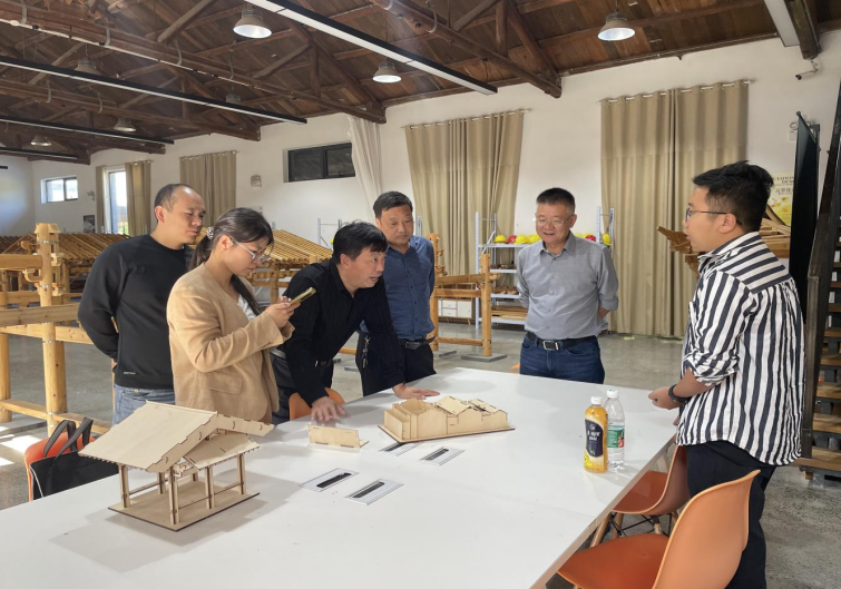 最后,调研组一行来到徽州区西溪南走访黄山兰德游文化传播有限公司,对接老屋阁、绿绕亭国宝搭建课程开发者申海文,了解榫卯潮玩积木开发情况。徐树红指出,徽派建筑是中华传统建筑文化的瑰宝之一,中国古建筑中的榫卯是极为精巧的发明,这种凹凸之间的契合不仅能抵抗千年时光的力量,更是中国千年建筑智慧的体现。使用是最好的传承,希望团队把更多徽州传统建筑榫卯“精髓”融入积木,用斗拱微缩模型助力大众对徽派古建艺术的兴趣和热情。