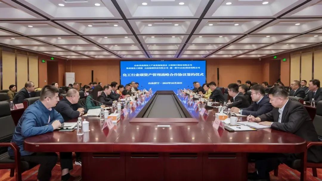 仪式上,山东省高端化工产业发展促进会与日照银行签订山东省化工行业碳资产管理战略合作协议;鲁西南化工联盟、臻一数字(山东)科技有限公司与山东绿碳科技有限公司进行济宁市化工行业碳资产管理战略合作签约;7家试点企业进行碳资产管理技术服务签约。