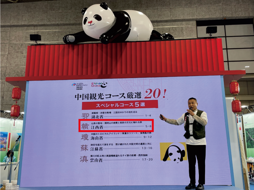 本次展会上,中国馆面向日本游客发布了中国旅游精品线路20条,赣州“阳明圣地 客家摇篮”4天3晚游线入选,并纳入特别推荐的5条线路之中,着重推广宣传。