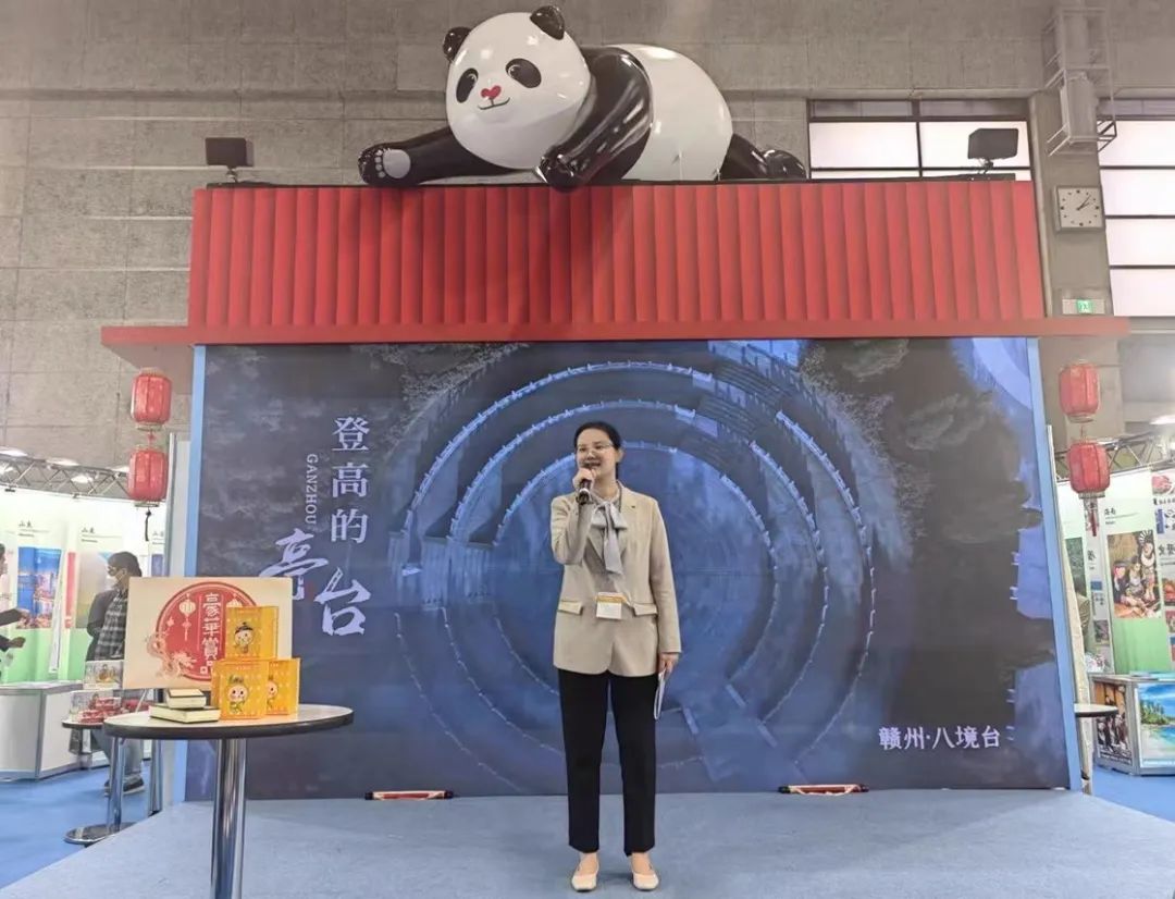 在展会的推介环节,江西赣州文旅推介官以短视频的形式,推介了赣州最具代表性的景区景点,并与现场观众积极互动,送上赣州特色的文创产品,给市民游客留下深刻的印象。