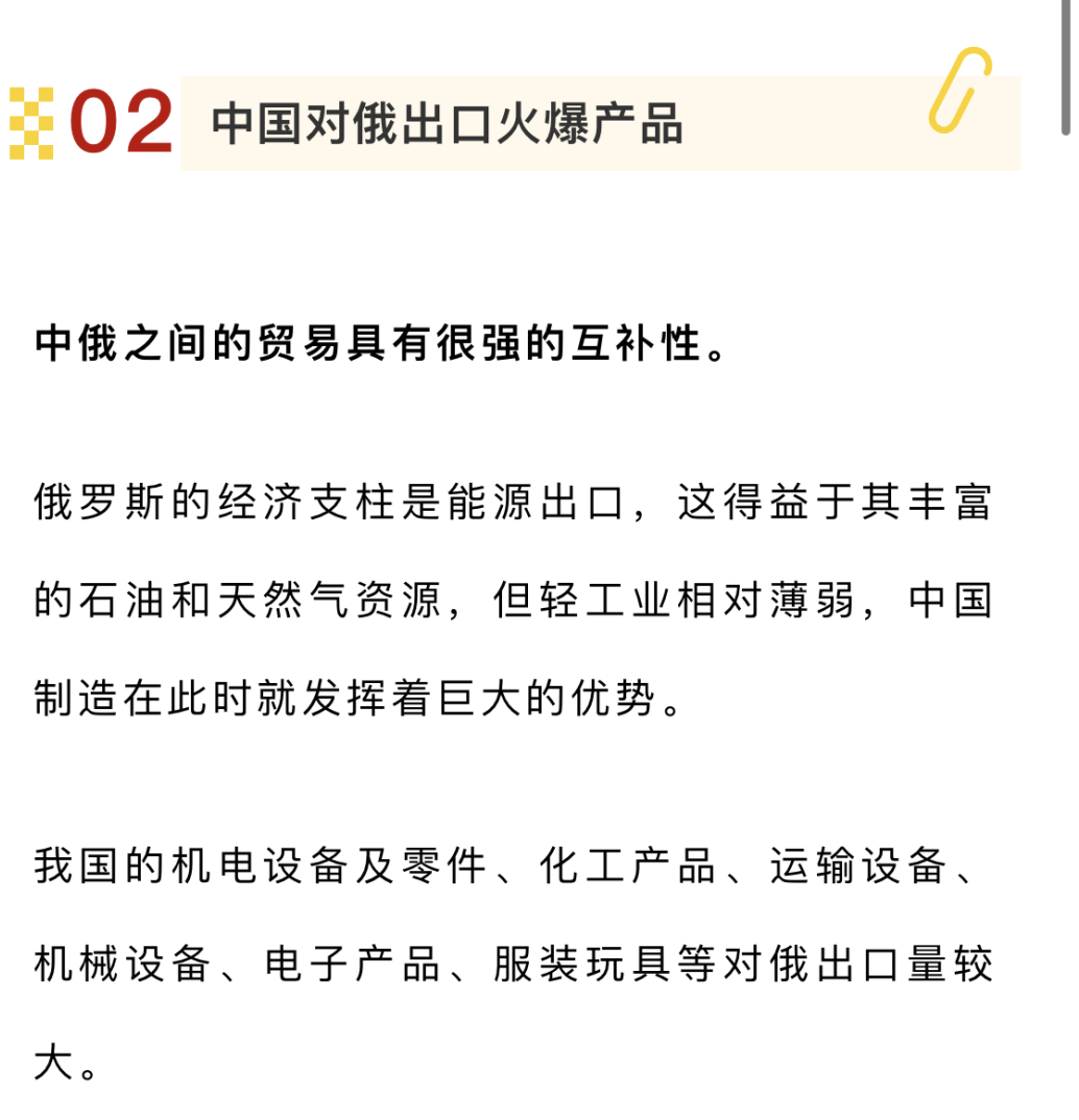 俄乌战争爆发后一年多,俄罗斯受到欧美国家的制裁和围堵,西方企业和品牌撤离俄罗斯市场,而其位置正被中国的同类产品所取代,中俄贸易也迎来黄金时期!