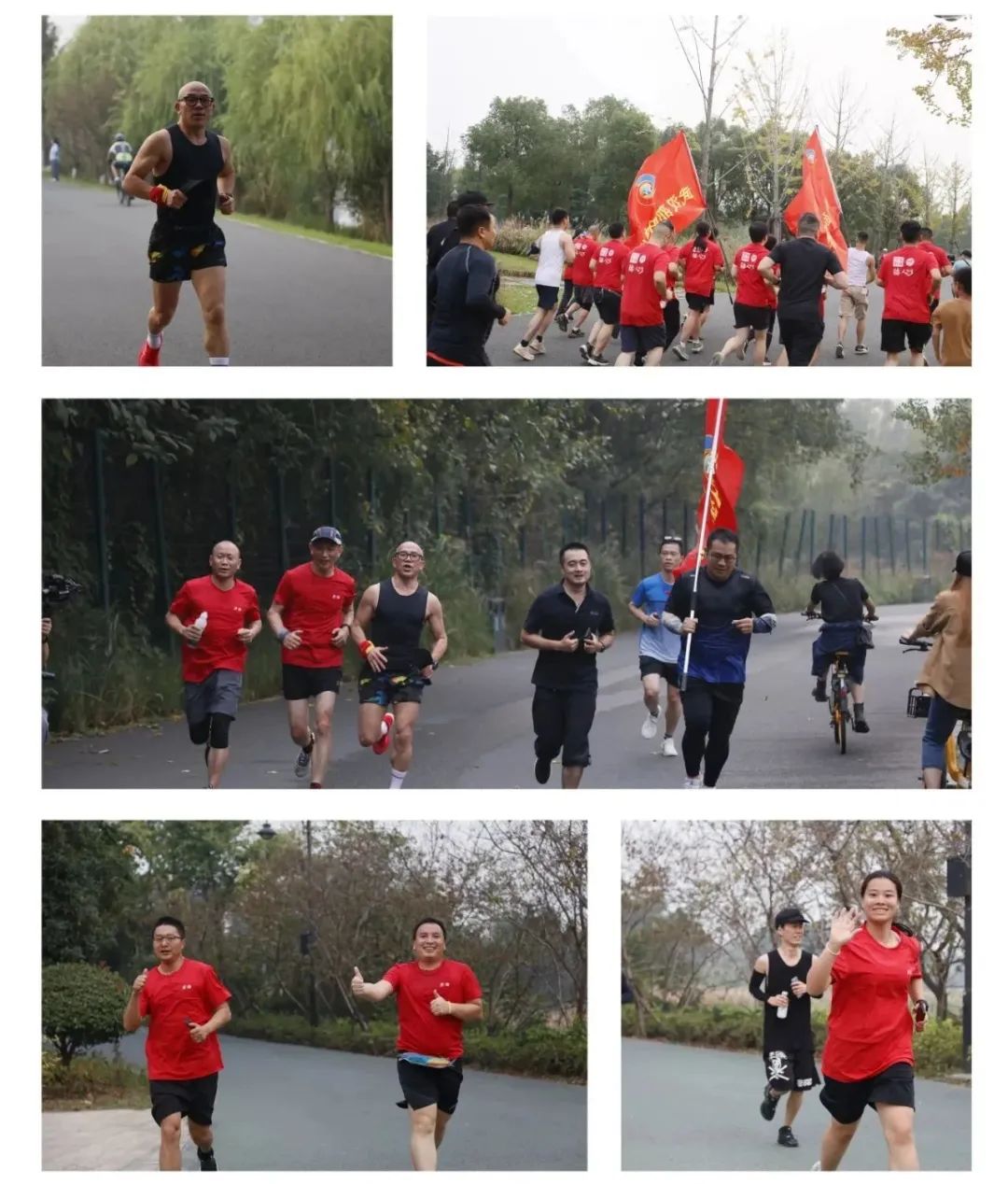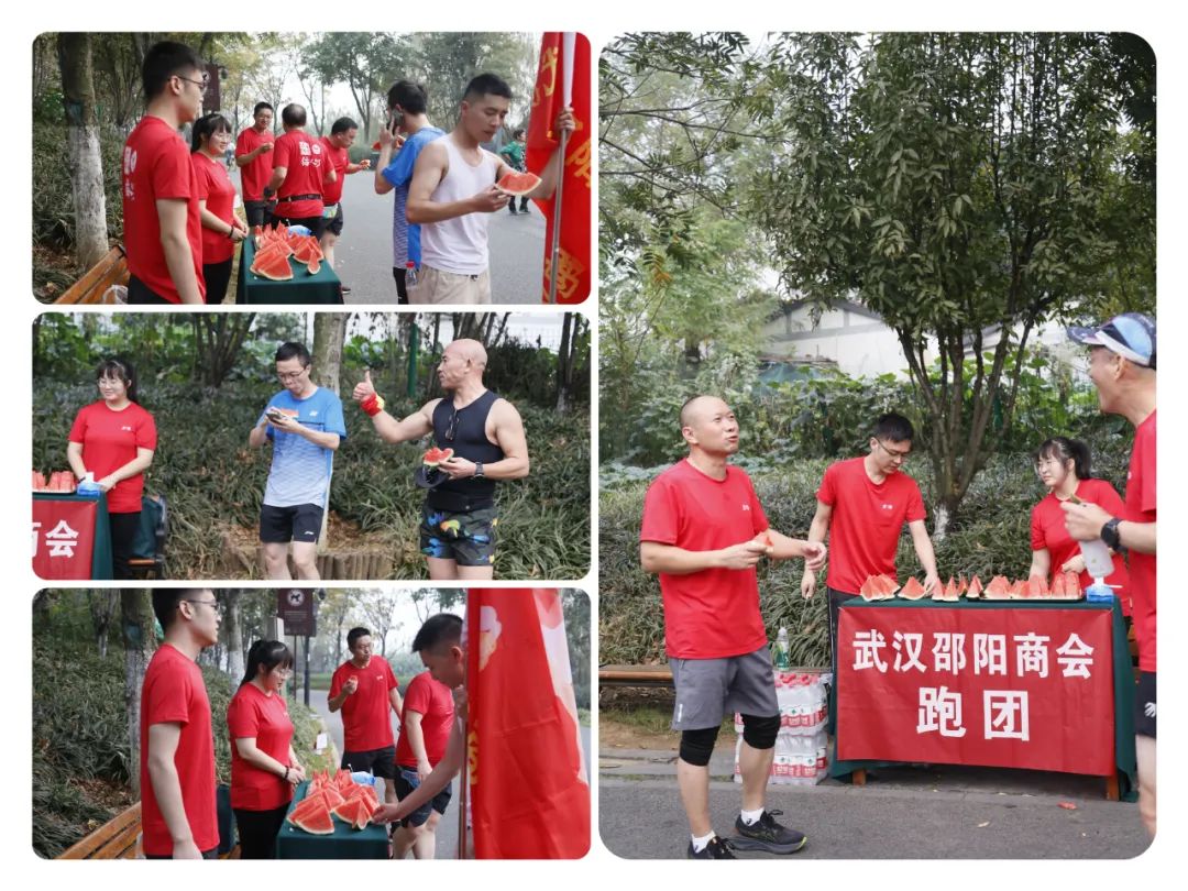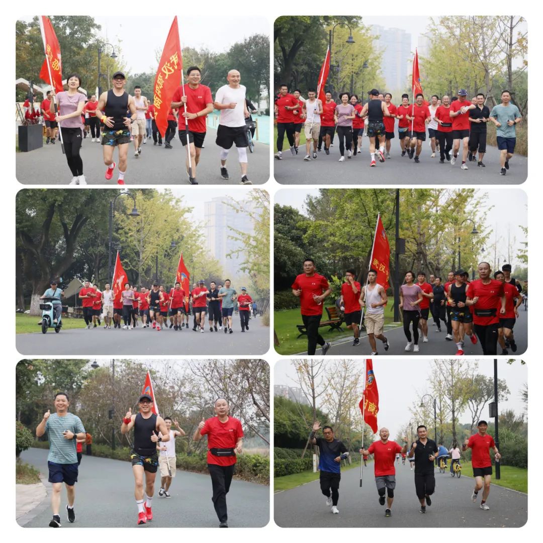 在轻松愉快的氛围中,游林会长带队,在武汉邵阳商会会旗和跑团旗两面红旗的引领下,大家尽情享受着跑步带来的乐趣。