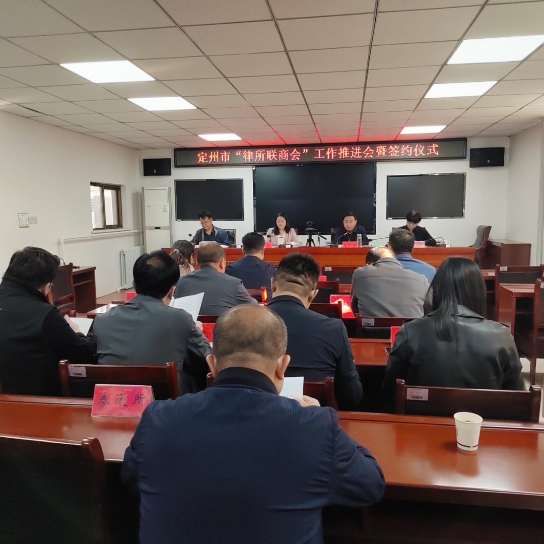 为深入贯彻落实《中共中央 国务院关于促进民营经济发展壮大的意见》,定州市深化“律所联商会”机制,推动民营经济高质量发展。10月24日,定州市工商联和司法部门联合举办“律所联商会”工作推进会暨签约仪式。定州市政协副主席、市工商联主席任改平出席活动。7家商会与7家律师事务所进行了现场签约。