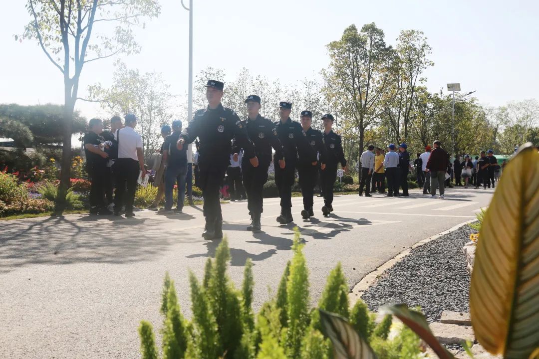 会场执勤民警“动静结合”开展巡逻防控,在人流密集的主会场和各出入口定点执勤,在嘉宾、游客通行的内部道路开展动态步巡,为群众提供指引、求助等服务。