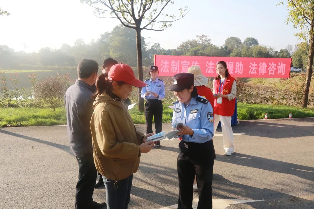 在会场内,民警与十里铺镇司法所工作人员联合开展普法宣传教育活动,向现场游客和周边群众介绍法律、防范等各类知识。