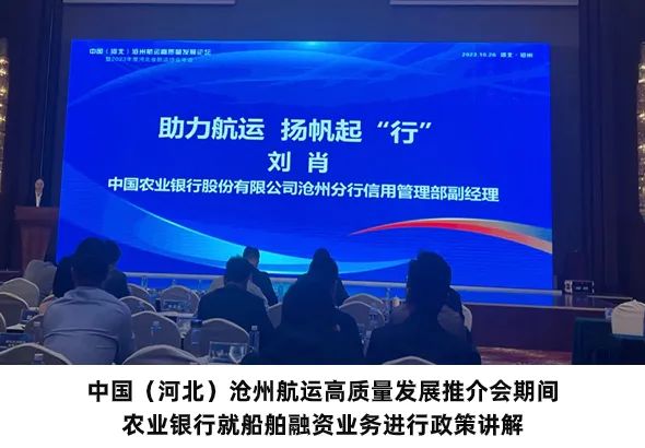 绿色金融助力船舶海工筑梦深蓝,2023年10月,中国(河北)沧州航运高质量发展推介会期间,农业银行就船舶融资业务进行政策讲解;同年4月,中国进出口银行举办浙江省船舶行业龙头企业座谈会,围绕船舶融资业务需求进行交流;2022年12月,建行江苏省分行为中远海运开出1.44亿美元船舶预付款保函;2021年11月,中国农业银行与中国船舶集团签署战略合作协议,5年内将为中国船舶集团提供1000亿元等值人民币意向性综合授信额度;中国银行、建设银行、农业银行等银行推出多种涉及船舶的融资信贷业务,给予船舶行业发展提供巨大的融资额度支持。