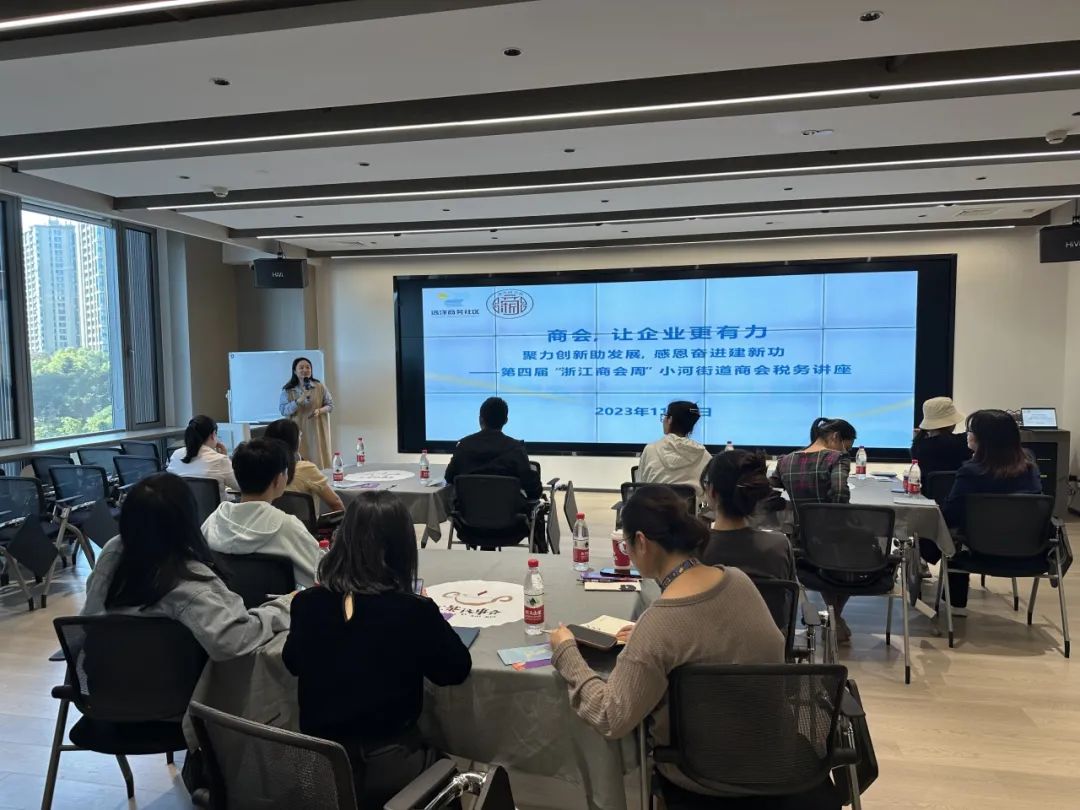 为进一步加强商会建设,更好地服务商会企业,帮助商会企业了解、掌握财税政策,提高企业财税管理水平。11月1日,由小河街道商会、小河街道远洋商务社区联合泰隆银行拱墅支行开展的第四届“浙江商会周”小河街道商会税务讲座在远洋商务社区成功举办。