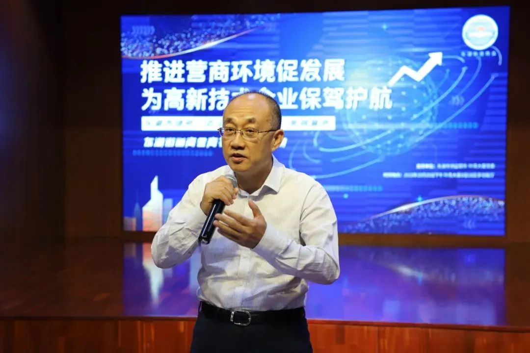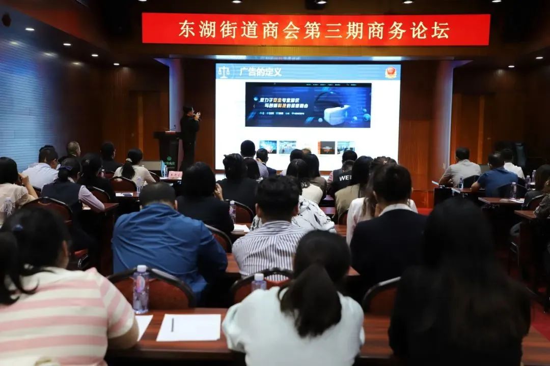 东湖街道商会会长、北京爱知之星科技股份有限公司CEO李贵生作商会工作部署。他表示东湖市场所通过鲜活的案例,解析企业宣传方面遇到的问题,答疑解惑,为企业健康发展保驾护航。东湖街道商会将把这次论坛精神落实好,接下来商会将成立技术、财务、人事三个专业微信群,在规范宣传、规范经营方面下功夫,减少企业在广告宣传方面的风险,推动企业健康发展、高质量发展。