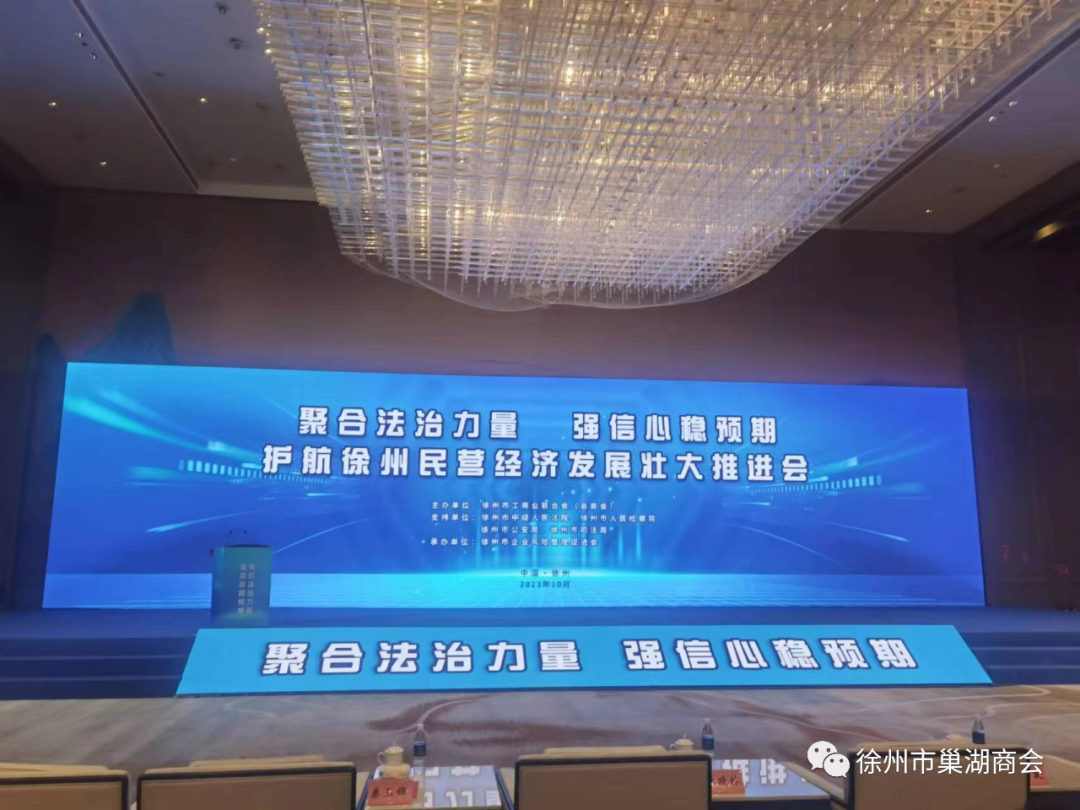 为进一步聚合法治力量,加强通力协作,助力民营企业强信心稳预期,推动徐州民营经济法治建设取得新成效。10月26日下午,徐州市召开了护航民营经济发展壮大推进会。省工商联党组成员、副主席李晓林,市人大常委会副主任赵兴友,市政协副主席、市工商联主席王海永,市委统战部副部长、市工商联党组书记秦玉锦,市中级人民法院审判委员会专职委员单云娟,市人民检察院检委会专职委员高永,市公安局党委委员、副局长杨锐,市司法局二级调研员张敬晖等领导出席了会议。