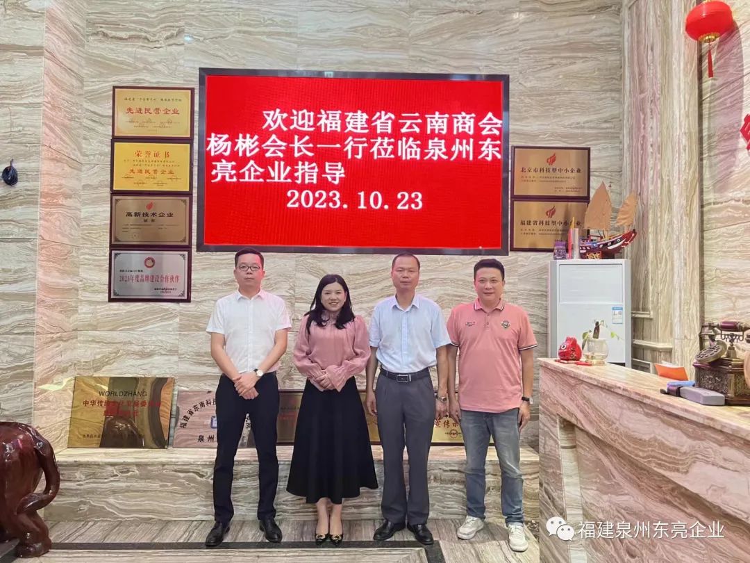 10月23号,福建省云南商会杨彬会长一行到了泉州走访企业,应泉州东亮企业邀请,杨会长莅临东亮公司指导,东亮公司张剑雄,杨志勇陪同接待。