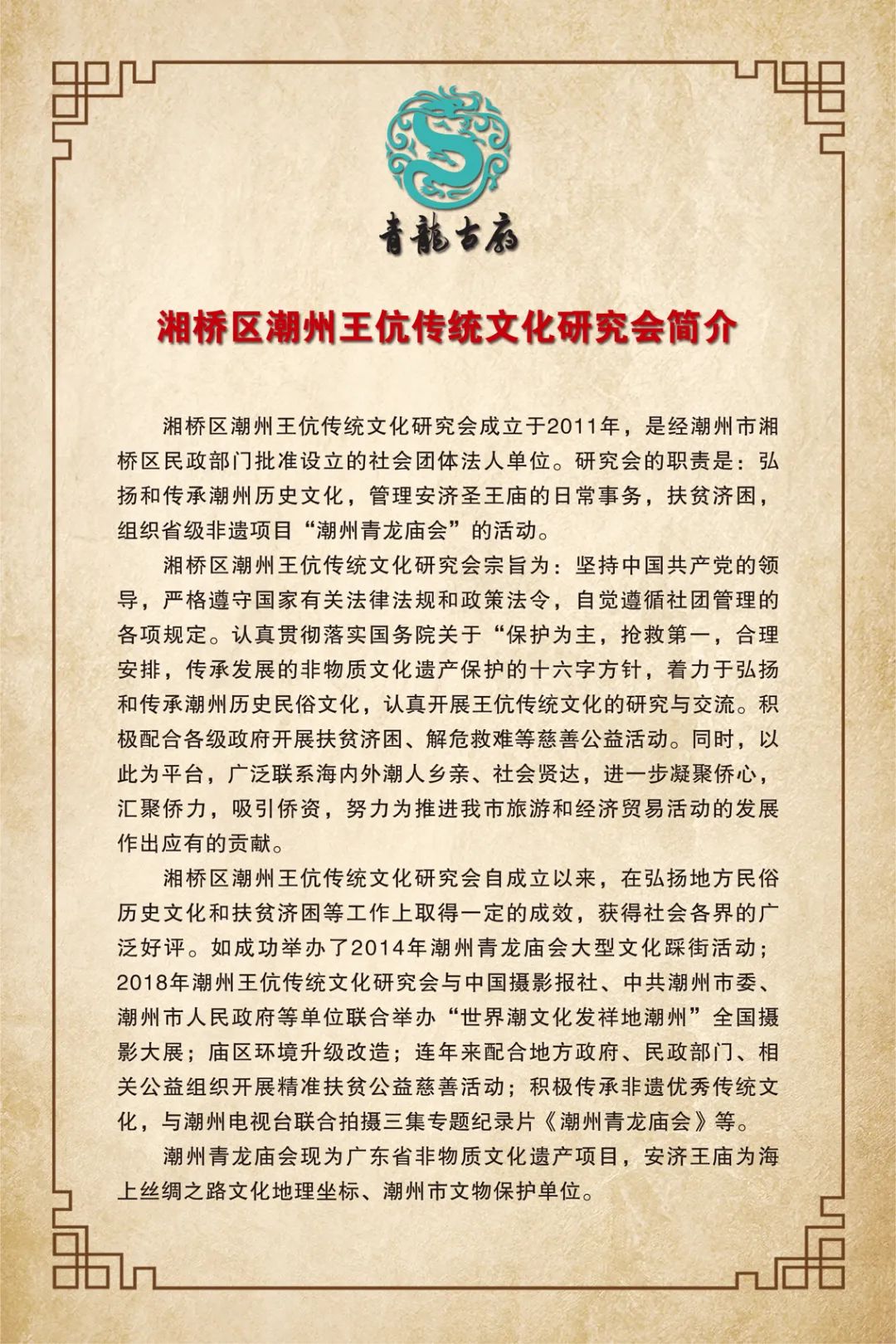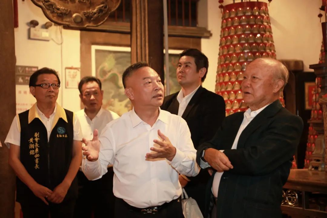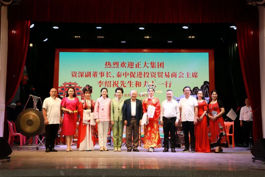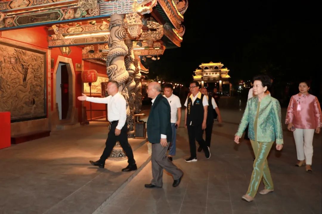 10月23日,泰国泰中促进投资贸易商会主席、正大集团资深副董事长李绍祝先生偕夫人,在国际潮青联合会副会长李红梅女士陪同下,到青龙古庙观光祈福,并在青龙古庙戏台观看演出;受到会长谢松青、常务副会长杨少南、副会长谢礼财、副会长兼秘书长黄潮铭、理事兼副秘书长曾小明、理事黄永强等理事会成员的热情接待。