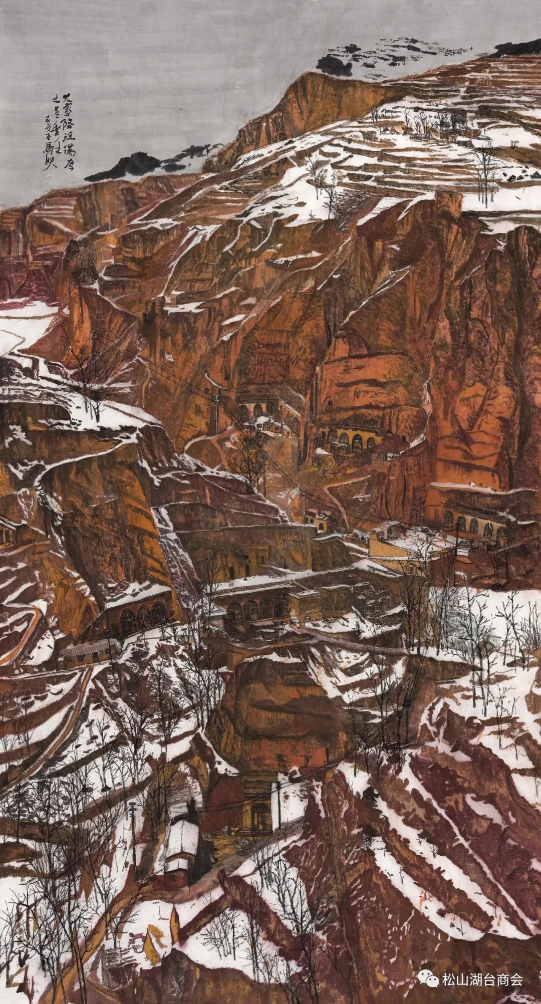 2017年11月在西安同学带领之下,第一次登上黄土高原,真正见识了塬。2019年春创作了这幅作品,入选了"美好中国・二十四节气主题创作中国画作品展" °这幅作品我借鉴了油画,西画的用色,技法,除了树木,几乎全用颜色画,完全颠覆了传统,黄土高原,我感觉只有用色才能很好表现出黄土高原浑厚大气的特征。