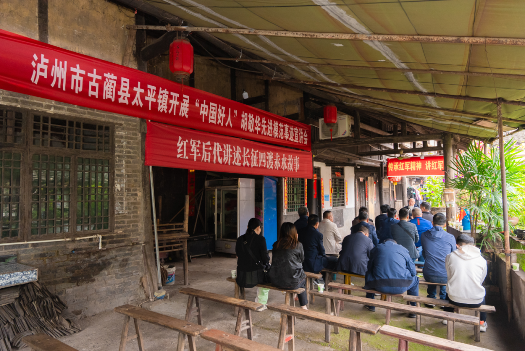 来到古蔺太平古镇,聆听“中国好人”、红军后代胡敬华先生讲述长征四渡赤水故事;到太平渡渡口纪念碑敬献花篮,缅怀先烈;来到了四渡赤水太平渡陈列馆参观学习。