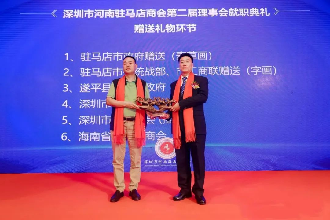 李新立会长代表海南省驻马店商会首先热烈祝贺深圳市河南驻马店商会的第二届理事会就职典礼圆满成功。深圳市河南驻马店商会自成立以来一直秉承为会员服务的宗旨,致力于促进驻马店和深圳两地的经济文化合作交流,并成功搭建了企业家们交流、资源共享和合作互利的平台。该商会也成为了驻深企业家们团结的场所,通过商会的组织和活动,他们加深了彼此之间的了解与合作,共同推动两地经济社会的高质量发展,为两地经济的繁荣发展做出了重要贡献。李新立会长还为深圳市河南驻马店商会精心准备了礼物,以表达对兄弟商会的衷心祝贺。