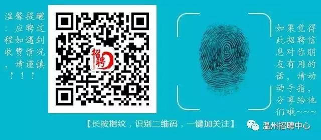 感谢您关注温州招聘中心公众服务平台,我们将竭诚为您提供招聘信息服务!因网络诈骗现象较多,层出不穷,请提高警惕!特别注意用人单位和个人以任何名义向求职者收取费用都属违法行为,谨防上当受骗!祝您找到满意的工作!