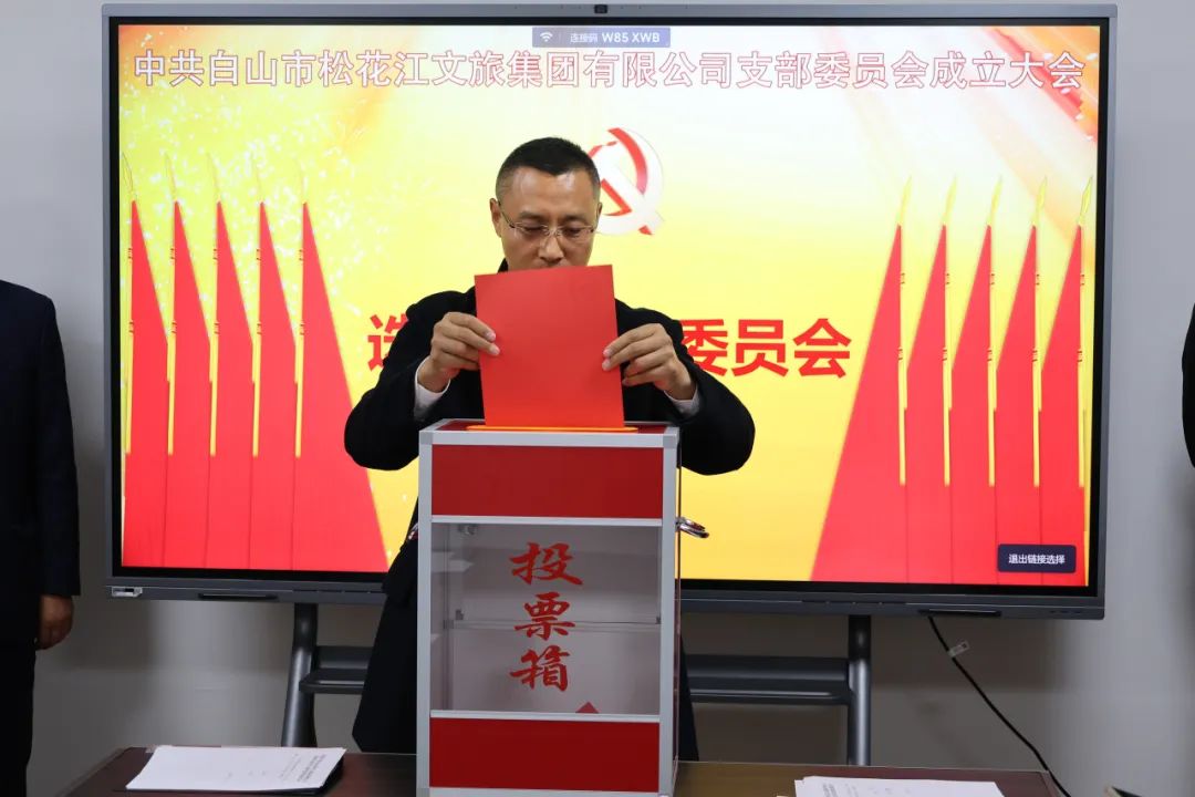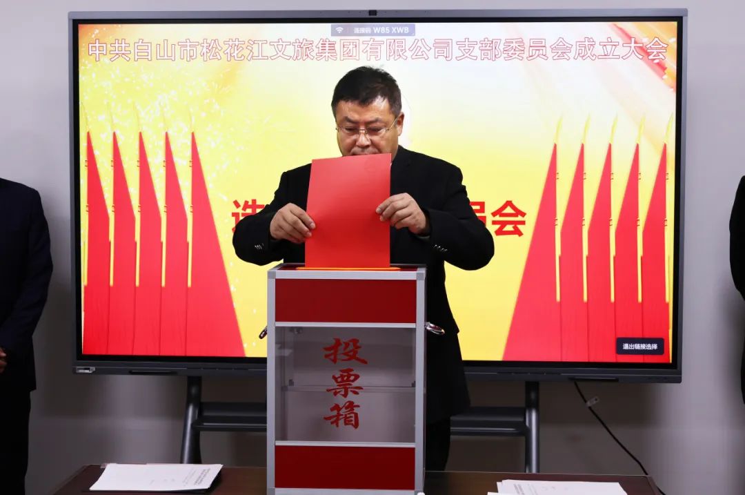 最后,现场通过投票选举的方式推选出中共白山松花江文化旅游投资集团有限公司党支部委员会新一届支部委员会委员,并召开第一次支部委员会,钟源当选为支部书记。