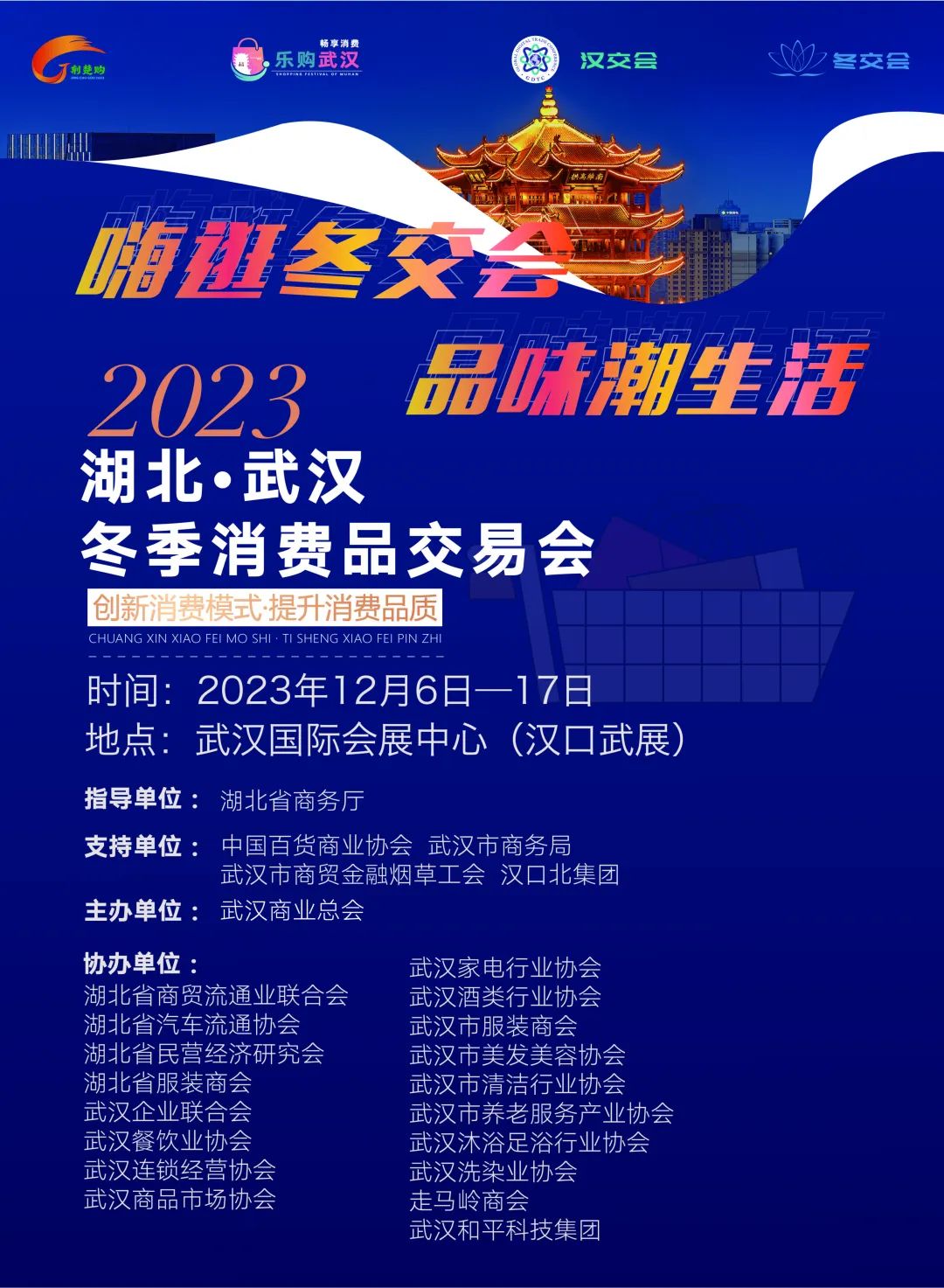 为切实恢复和扩大消费,多措并举推动消费品市场加快回暖和提质升级,促进各行业效益提升,在政府相关部门和行业协会及相关单位的大力支持下,武汉商业总会将于12月6日至17日举办“2023湖北·武汉冬季消费品交易会”。