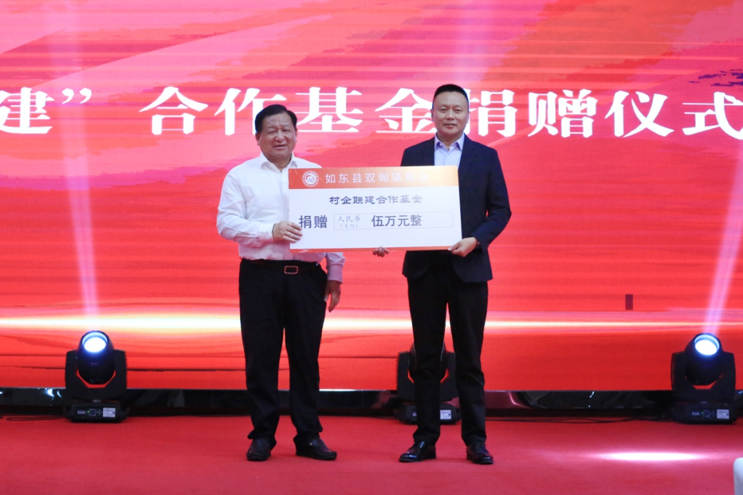 吴迪富代表双甸镇商会捐赠“村企联建”合作基金。