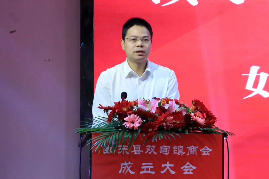 县工商联主席王毅敏宣读《关于同意成立双甸镇商会的批复》和商会选举结果。