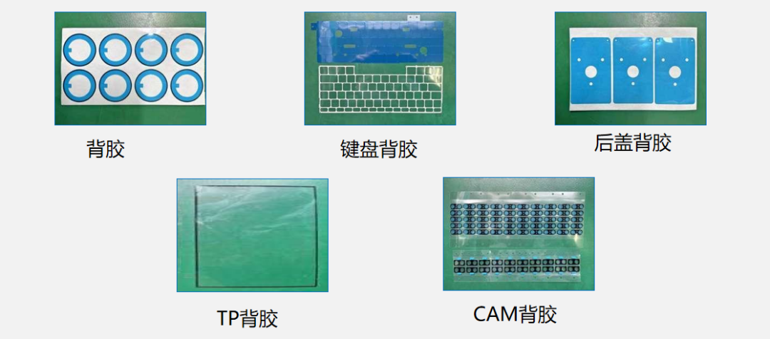 在消费性电子产品的小、轻、薄趋势中替代传统的铆钉、螺丝、焊接件等机械式紧固器件,用于实现器件间的物理连接与固定,使得电子产品更薄、更轻、更小,密合性更好。常用材料类别:无基材胶、有基材胶;热熔胶、导电胶等。
