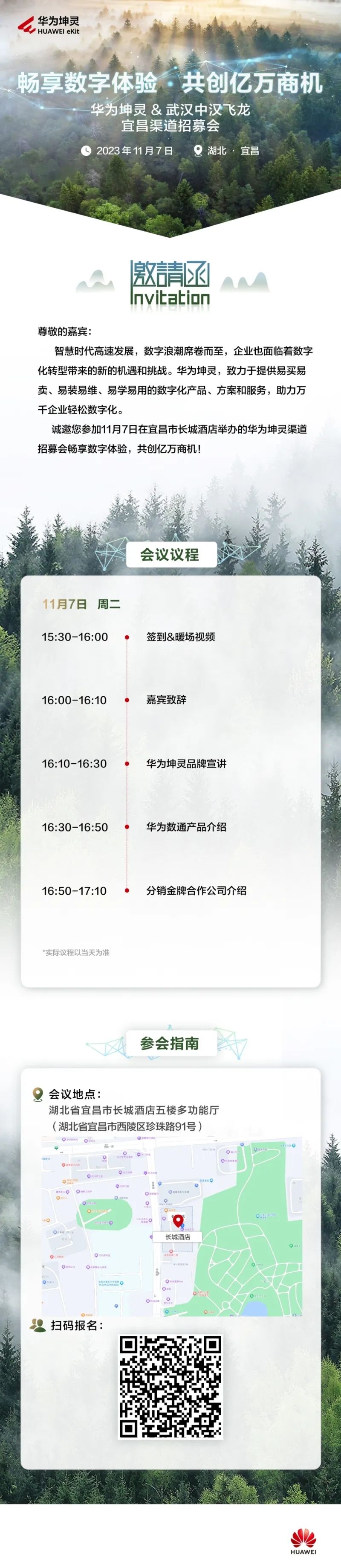 宜昌市西陵区数智信息技术同业商会诚邀您参加11月7日在宜昌市长城酒店举办的华为坤灵渠道招募会。