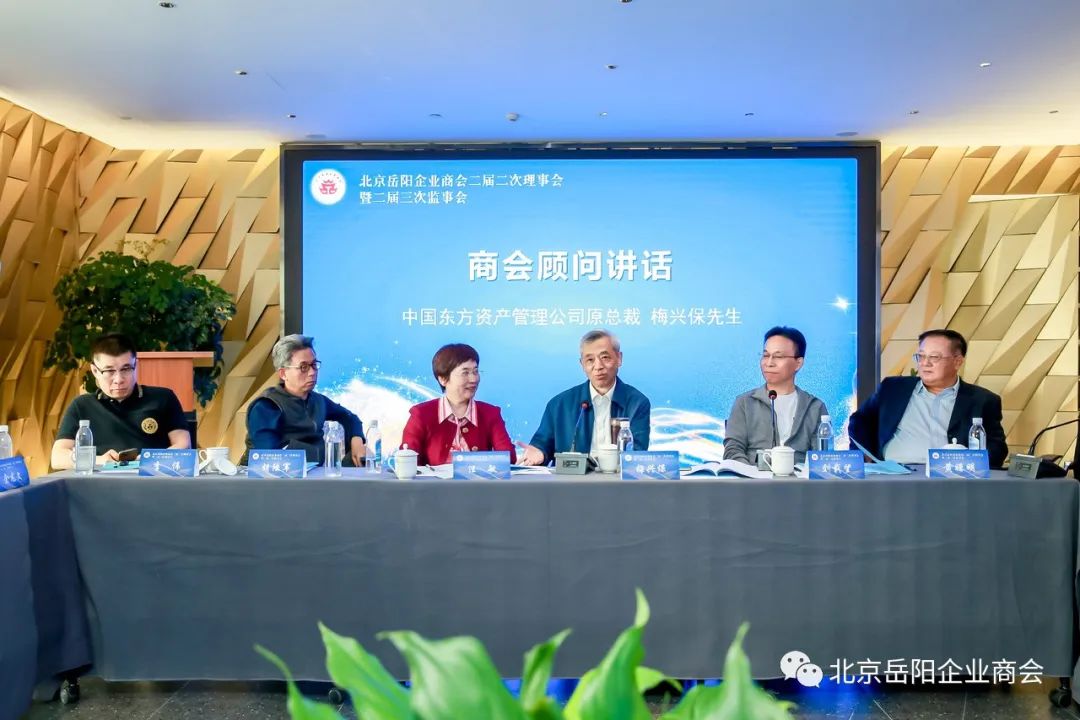 商会顾问、中国东方资产管理公司原总裁梅兴保在会上对商会工作发展给予了肯定和期待。他说,北京岳阳企业商会从成立至今,5年来发展很好,影响很大,为家乡做了很多实事,这是在京乡友们和家乡父老乡亲们都能看到听到的。商会宗旨明确,机构完善;会员团结齐心,无私奉献。商会在凝聚乡情,心系桑梓方面发挥了很好的作用。我们在京的岳商企业家们经过三年疫情折腾后,面临的经济形势仍然复杂多变,要办好一个企业,成为一个行稳致远做大做强的企业家,目前情况下,建议大家:一是要看好自己的钱,二是要领导好团结好自己的人,用人所长,因人施策。民营企业要实现由家族式老板向现代企业家转变,要有自己清晰的发展思路,完善的管理机制,还要有自己的资源人脉关系,在北京有很多熟悉民营企业政策、支持民营企业方式的高端管理人才,大家要放眼长远,抱团取暖,祝愿大家共同发展,越来越好。商会常务副会长、江河创建集团股份有限公司董事长刘载望即兴发言,与大家分享前几天湖南省委书记沈晓明在京召集9位企业家座谈并给民营企业鼓劲的暖心一幕,刘会长深有感慨说,我们湖南书记号召市县党政领导都要走出来招商,现在观念新了,机会来了,投一个项目不是先要手续办得快一点,更重要的是成本要降得低一点,这是站在我们企业家的角度在说话。我们在北、上、广看起来地价贵、工价高、成本高,但它有资源汇集和信用好的优势,反而成本低。现在我们湖南和我们的家乡岳阳营商环境确实在改变,党政领导观念很前卫,鼓励我们企业家不失时机,用好政策,继续创新业攀新高,在我看来,湖南第二次弯道超车的机会又来了。汪敏会长在会议结束时说,感谢梅顾问给我们传授的“干货”和对商会工作的肯定,这既是对我们的期望,也是我们努力的方向和目标,理事会是我们商会最大的一个核心,很多事情都要理事会来决策,希望大家切实履行商会章程上赋予我们每位理事的权利和义务,践行商会宗旨,共建会员平台,积极交流互动,营造融合氛围,实干展现风采。