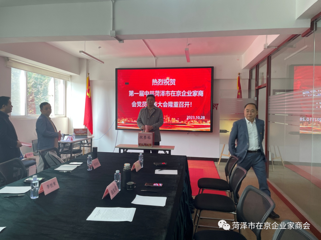 大会以举手表决方式全体通过了《菏泽市在京企业家商会党支部党员大会选举办法》、党支部委员会委员候选人建议名单、监票人名单。随后,按照选举办法,大会采用无记名投票和差额选举的办法选举了第一届党支部委员会委员。新当选的支委会委员召开党支部委员会第一次全体会议,郭祥恩当选为支部书记,李世来当选为组织委员,张国强当选为宣传委员兼纪检委员。
