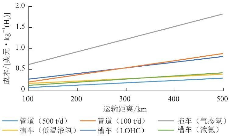 图1 几种储运技术成本与运输距离关系图
