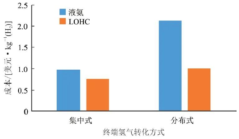 图2 液氨与LOHC终端氢气转化成本图