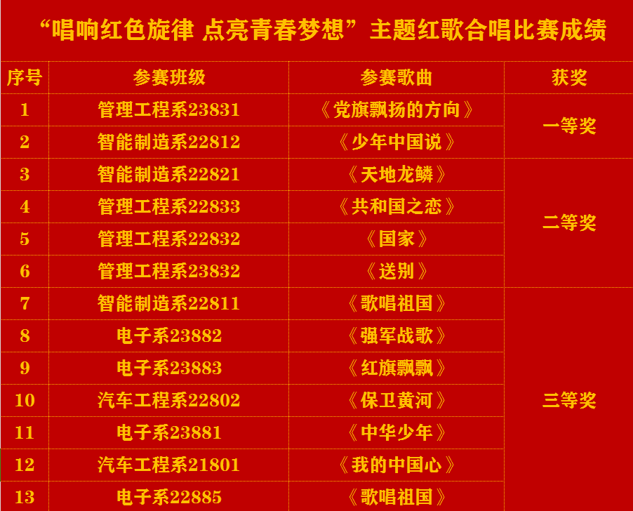 经过各系激烈的初赛角逐,13个班级从59个班级中脱颖而出,进入决赛。