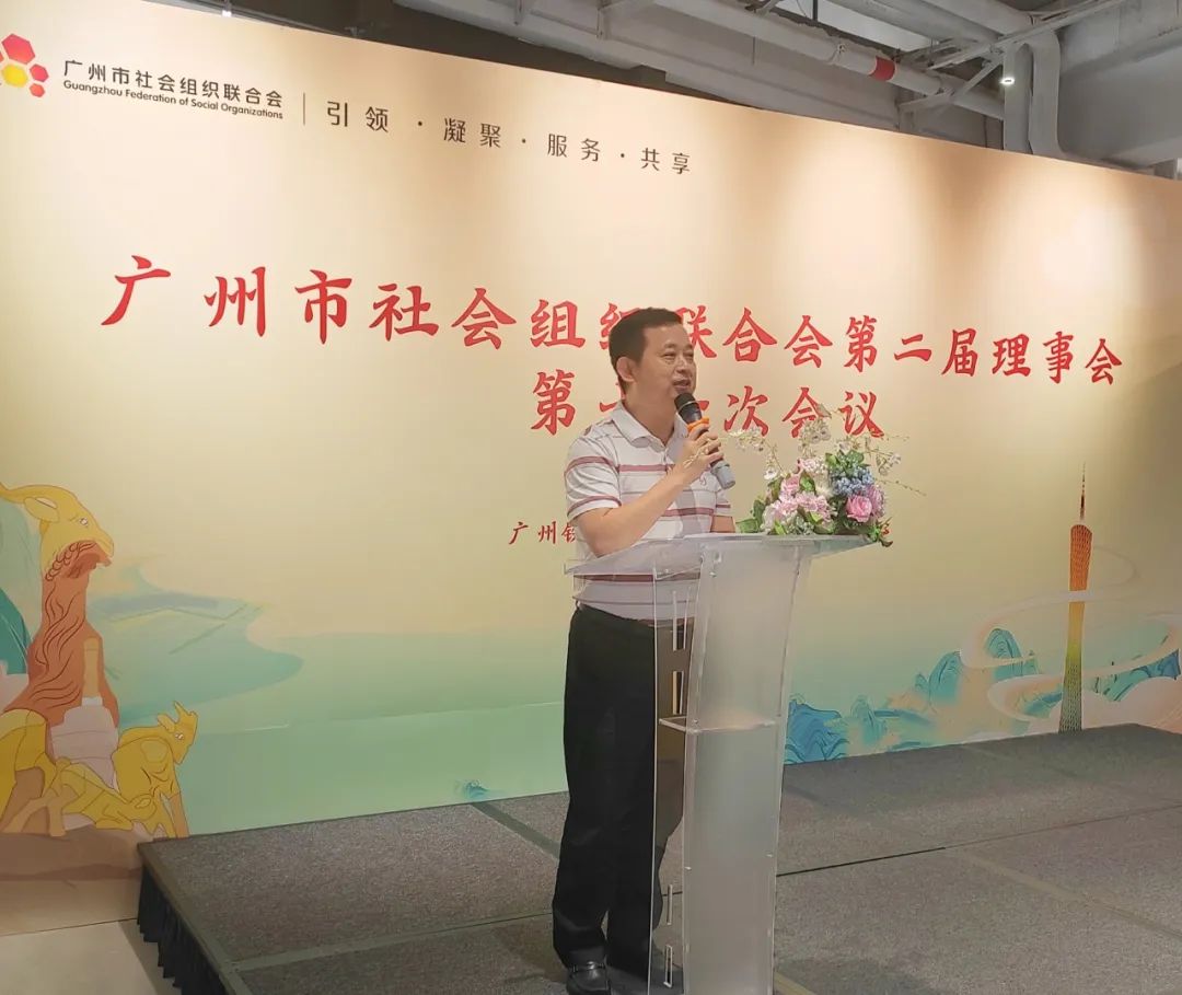 随后,冯耀良会长发表讲话,他首先对与会的领导、理事会成员、监事致以谢意,对广州社联五年来的努力拼搏表示赞许。他指出,未来,广州社联要继续践行使命价值,打造更加良性、充满活力的广州社会组织生态圈,宏大“全国先进社会组织”品牌效应,为服务省市高质量发展作出更大贡献!