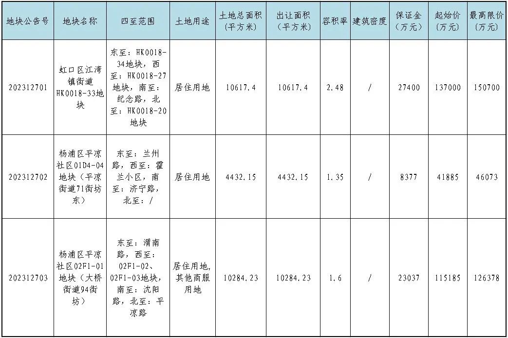 根据国家有关法律、法规和《招标拍卖挂牌出让国有建设用地使用权规定》、《上海市土地使用权出让办法》等规定,发布涉及虹口区、杨浦区2个地区共计3幅国有建设用地使用权。有关情况公告如下: